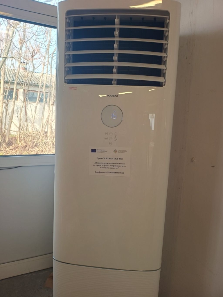 В изпълнение на договор за финансиране по процедура: Подкрепа за енергийно обновяване на сгради в сферата на производството, търговията и услугите № BG-RRP-4.021-0053-С01 „Енергийно обновяване на производствена сграда чрез внедряване на ЕСМ“ е постигната основната цел на проекта – енергийно обновяване и респ. повишаване на енергийната ефективност на производствена сграда на „ЛУМБРЕКО“ ЕООД, чрез внедряване на високоефективни мерки за енергийна ефективност включени в Енергийния доклад за резултатите от обследване за енергийна ефективност, изготвено по реда на Наредба № Е-РД-04-05 от 08.09.2016 г. и съгл. чл. 57, ал. 6 от ЗЕЕ.